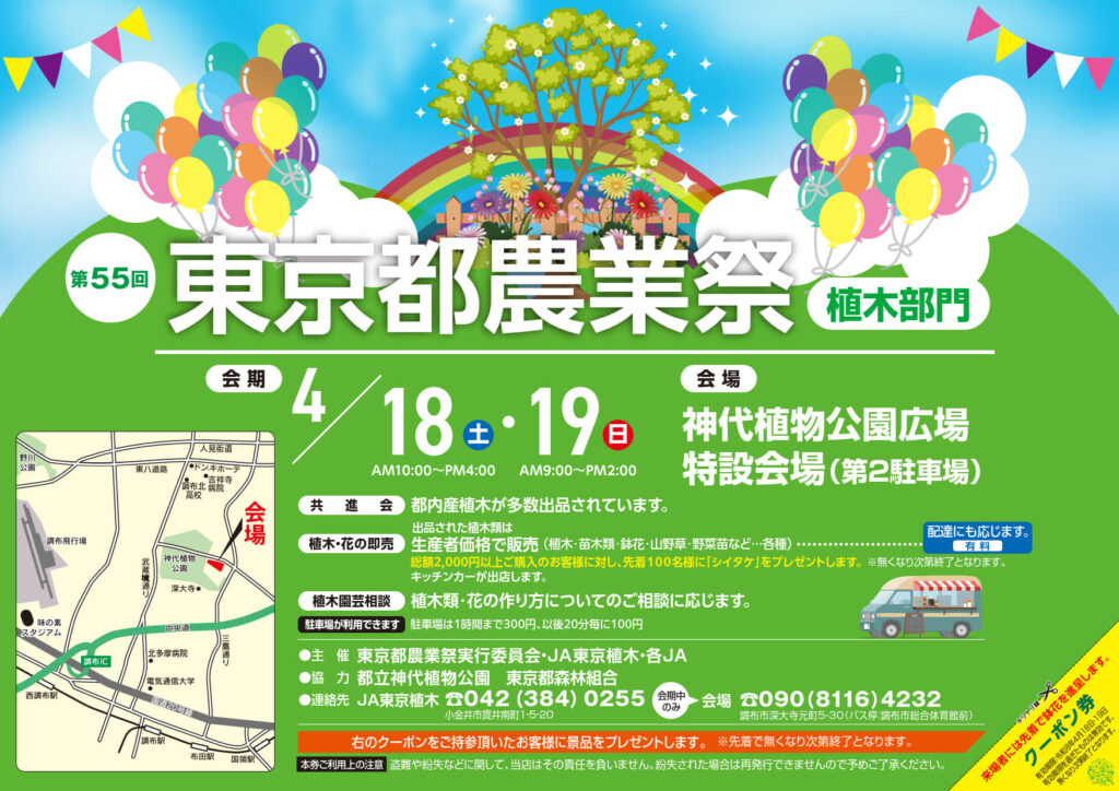 4月18日(土)・19日(日)、神代植物公園 第2駐車場にて「第55回東京都農業祭~植木部門~」を開催いたします!