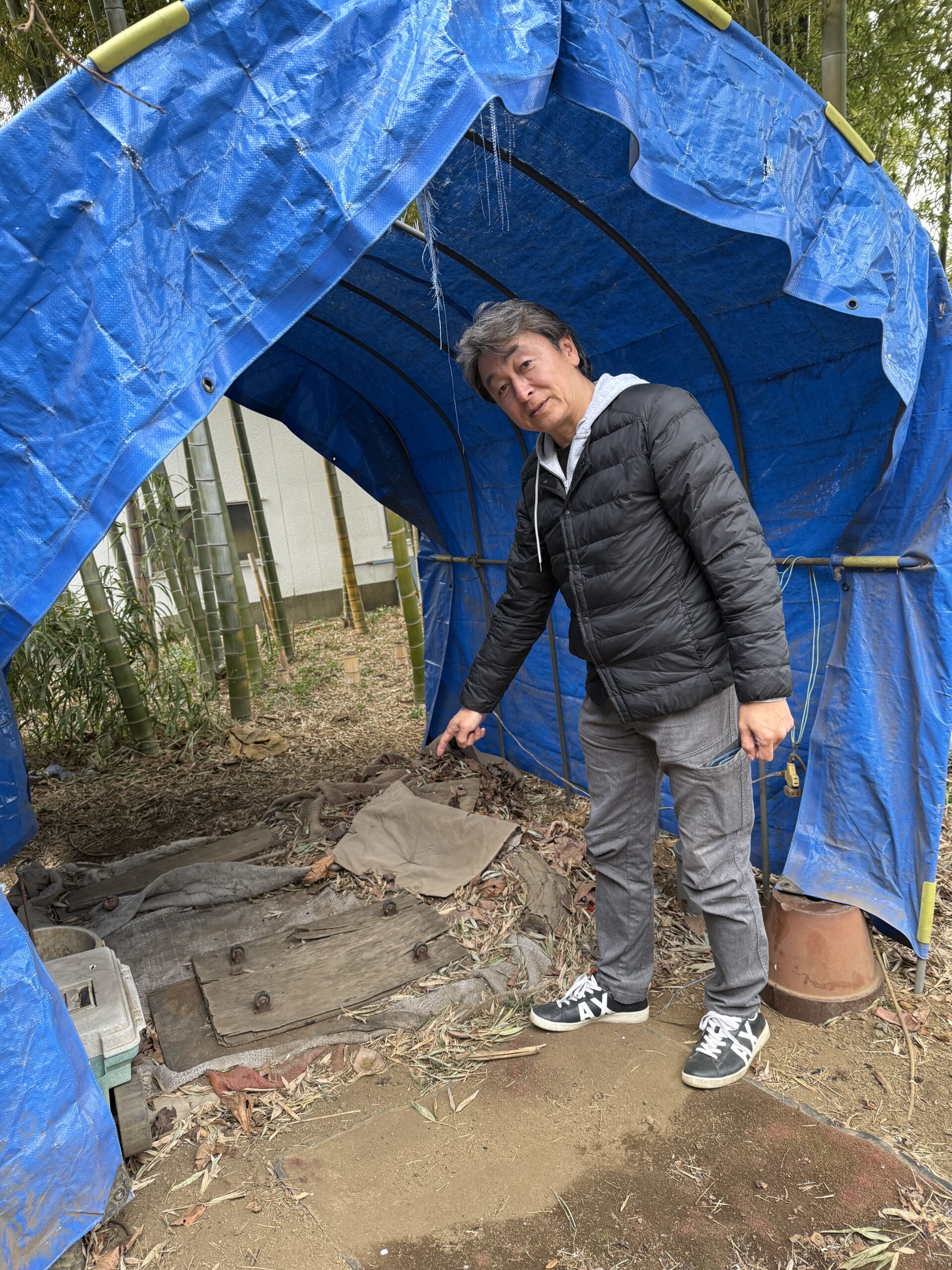 「ウドの栽培は父の代からです。私が生まれる前には、もうすでに作っていましたから家としては少なくとも六十年以上、ウドと付き合ってきたことになります。記憶にある限り、物心ついたときには冬の仕事としてウドが当たり前にありました。冬になると土の下に潜って白いウドを出す。その作業が家の暦として回っていたという感じです。ウドの栽培は立川だけで始まったというより、武蔵野や国分寺あたりで作っていた人たちがいて、親戚筋や知り合いづてで少しずつ伝わってきたらしいんです。ウドってタネをまいて終わりではなく株を育ててまた株を分けて次につなぐでしょう。だから結局、株が動くことで広がっていく。父は『そうやって増えていった』と話してました。それから、立川の土がウドに合っている、というのは昔から言われてきました。関東ローム層で粘土質のところがあるので水持ちがいい。地下で育てる作物ですから乾きすぎてもだめだし、逆に水が抜けすぎてもだめで、その加減がウドの出来に直結します。ここは土の性質として、その加減がつくりやすい土地なのです。だから立川はウドに向いていると言われてきたし、実際にウドをやる農家が一時期は増えたのだと思います」